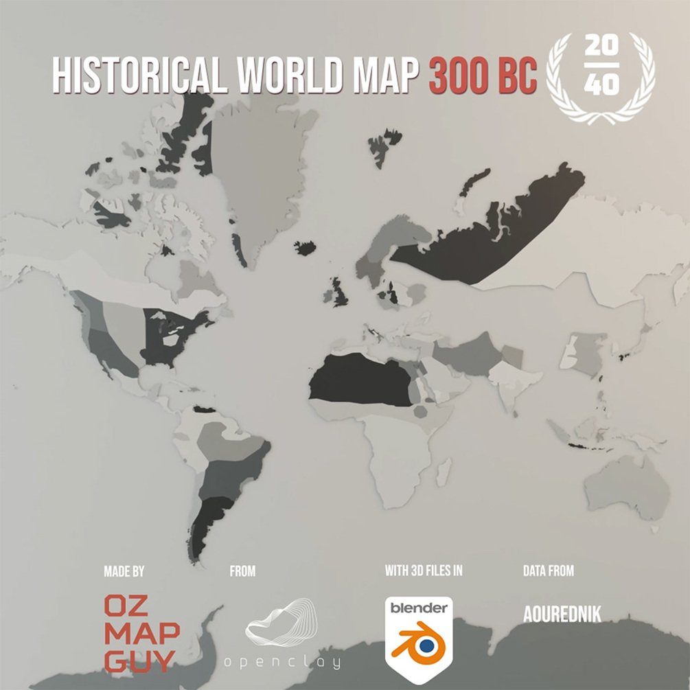 Historical World Map 300 BC Blender 3D